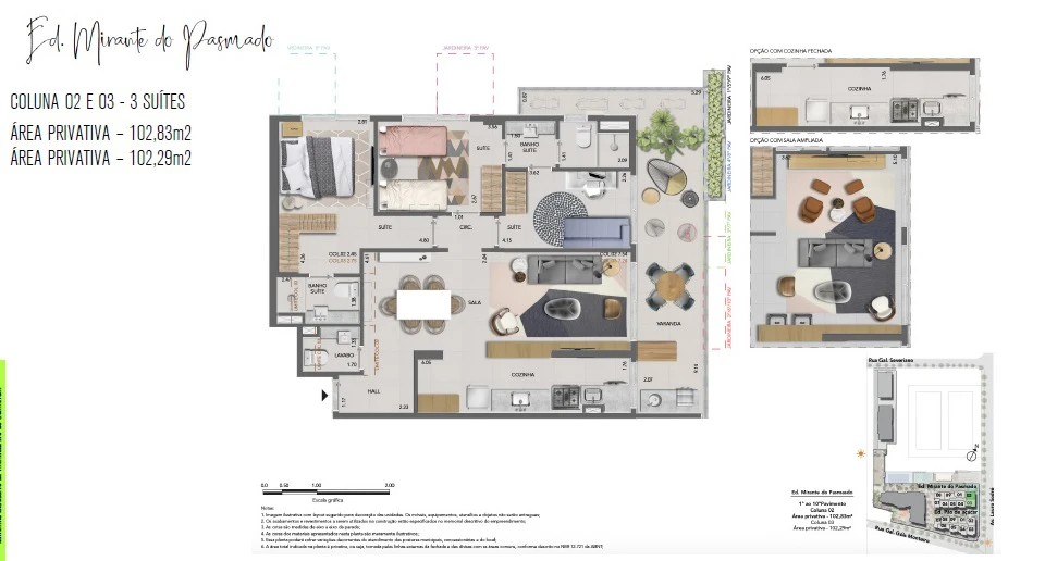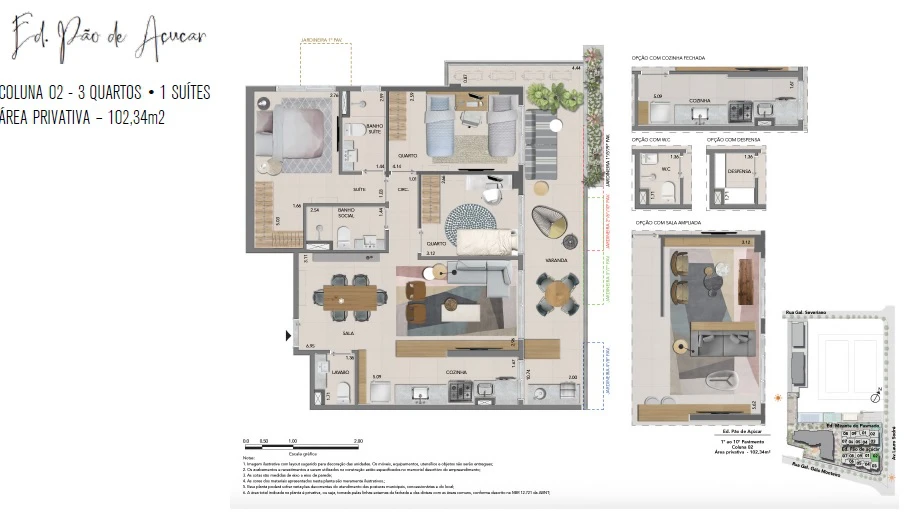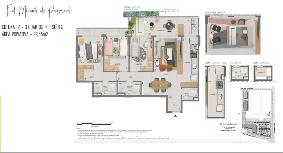 Apartamentos de 3 quartos de 97m² até 144m²;
